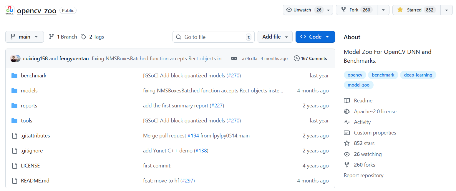 OpenCV Zoo and Benchmark は安牌